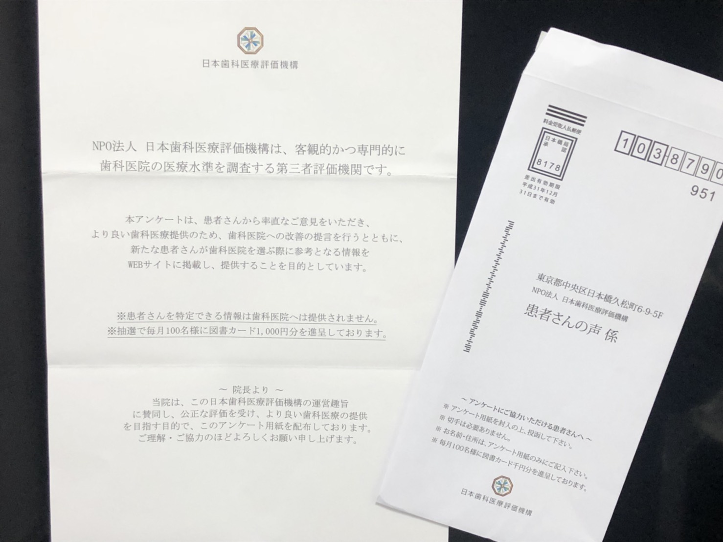 NPO法人 日本歯科医療評価機構さんのアンケートを
